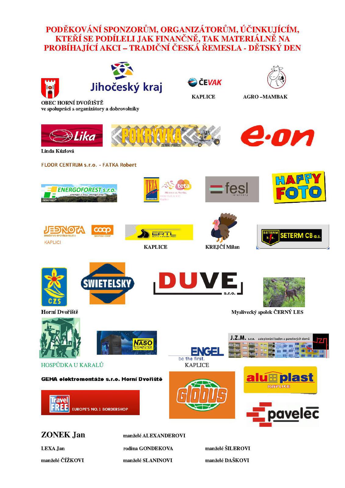 PODĚKOVÁNÍ SPONZORŮM, ORGANIZÁTORŮM, ÚČINKUJÍCÍM, BEZ KTERÝCH BY TO NEŠLO